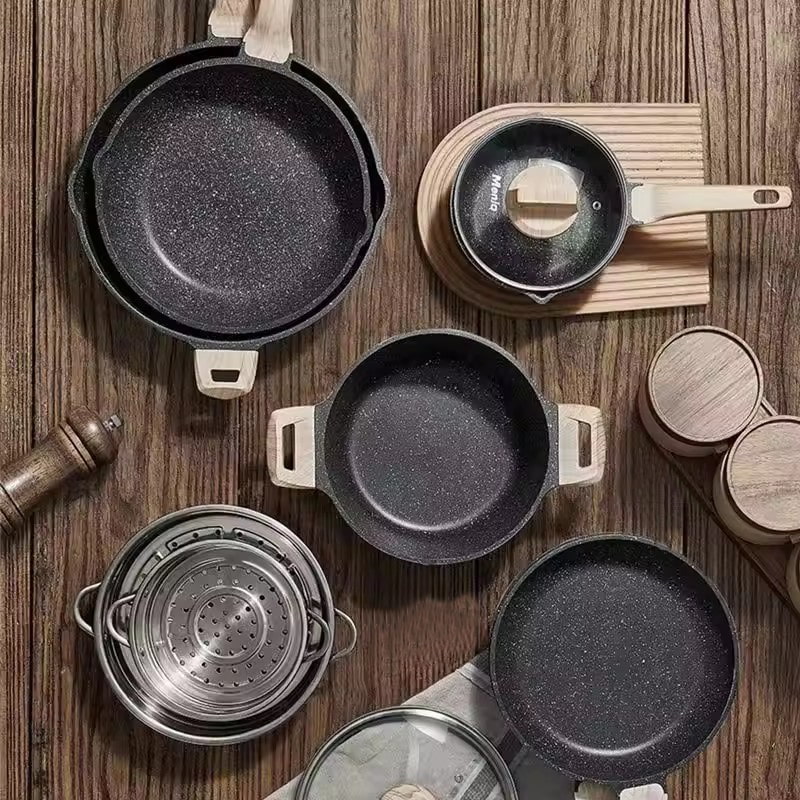 Hjem / Produkt / Sett med kokekar / NonStick kokekarsett Svart kjøkkenutstyr gryter og panner tåler oppvaskmaskin